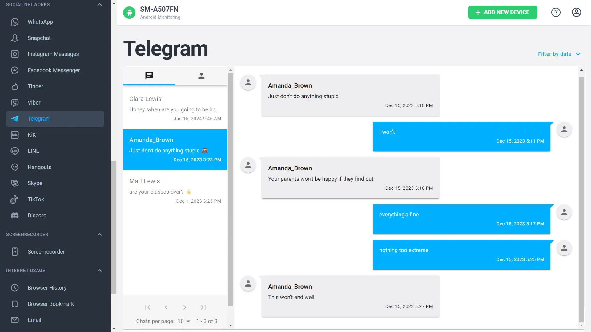 Kann mSpy geheime Chats von Telegram überwachen? Während diese App die geheimen Chats von Telegram aufgrund der Verschlüsselung nicht direkt verfolgen kann, bietet ihre Bildschirmaufzeichnungsfunktion eine Abhilfe, indem sie die Bildschirmaktivität live erfasst, einschließlich der geheimen Chats, auf die während der Aufzeichnung zugegriffen wird.